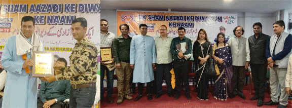 بھوپال ۴ اگست(پریس ریلیز) تہذیب فاؤنڈیشن رجسٹرڈ بھوپال و اسلم چشتی فرینڈ سرکل(اے سی ایف سی) کے باہمی اشتراک سے ایم ڈی ہائر سیکنڈری اسکول ،جہانگیرآباد بھوپال میں ایک شام آزادی کے دیوانوں کے نام کل ہند کامیاب مشاعرہ کا انعقاد کیا گیا۔کل ہند مشاعرہ کے پہلے حصے میں مہمانوں کا اعزاز و استقبال کیا گیا اورایم پی بورڈ امتحانات میں میرٹ میں آنے والے طلبا کو ایوارڈ سے سرفراز کیا گیا۔مہمانوں کو تہذیب فاؤنڈیشن کی جانب سے مومینٹو ،شال اور پھولوں کا گلدستہ پیش کیا گیا۔کل ہند مشاعرہ کی صدارت کے فرائض انجام دینے والے چھتیس گڑھ کے سابق ڈی جی پی ایم ڈبلیو انصاری کا استقبال ممتاز شاعر و تہذیب فاؤنڈیشن کے سکریٹری ڈاکٹرانجم بارہ بنکوی اور ایم ڈی ہائیر سیکنڈری اسکول کے پرنسپل مولانا محمد اشرف نے کیا جبکہ پروگرام کے مہمان خصوصی و ریوا کے سابق آئی جی ڈاکٹر مہیند رسنگھ سکروار کا استقبال ڈاکٹر انجم بارہ بنکوی نے کیا۔ممتاز سماجی کارکن و کاروان انسانیت کے صدر طارق جیلانی کا استقبال سینئر صحافی خان آشو نے،انٹر نیشنل ہاکی پلیئر و ایم ڈی ہائیر سیکنڈری اسکول کمیٹی کے صدر محمد امین کا اعزاز تہذیب فاؤنڈیشن کے اہم رکن سید آصف علی نے،ممتاز صوفی پیر بادشاہ میاں کا استقبال مشہور معالج ڈاکٹر قمر علی شاہ اوربھوپال کے اہم شاعر شعیب علی خان شاد نے ، نامور صحافی و روزنامہ نیا نظریہ کے مدیر و ناشر ڈاکٹر نظر محمود کا استقبال سینئر صحافی ڈاکٹر پنکج سونی نے اور (اے سی ایف سی) کے صدر وفن عروض کے ماہر اسلم چشتی کا استقبال روزنامہ ندیم کے سینئر صحافی محمد سلمان خان نے مومینٹو اور شال پیش کرکے کیا۔اسی طرح سے کل ہند مشاعرہ میں شرکت کرنے والے شعرا ءکا استقبال بھی مومینٹو،شال اور پھولوں کا ہار پیش کرکے کیا گیا۔ (باقیصفحہ سات پر)