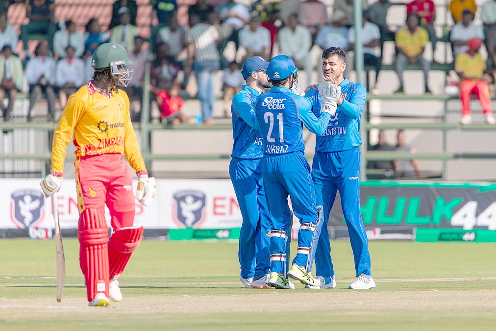 اس سے قبل بدھ کی شب کھیلے گئے میچ میں افغانستان کی جانب سے سلامی بلے باز رحمان اللہ گرباز اور ابراہیم زدران نے شاندار آغاز فراہم کرتے ہوئے پہلی وکٹ کے لیے 76 رنز کی شراکت قائم کی۔ آٹھویں اوور میں گرباز 25 گیندوں پر 39 رنز بنا کر سکندر رضا کی گیند پر آؤٹ ہوئے۔ اس کے بعد صادق اللہ (25) کو بلیسنگ مزرابانی نے پویلین بھیجا۔ بارہویں اوور میں سکندر رضا نے ابراہیم زدران اور درویش رسولی (صفر) کو لگاتار آؤٹ کر کے افغانستان کو مشکلات میں ڈال دیا۔ ابراہیم زدران نے 33 گیندوں پر چھ چوکے اور ایک چھکا لگا کر 52 رنز بنائے۔