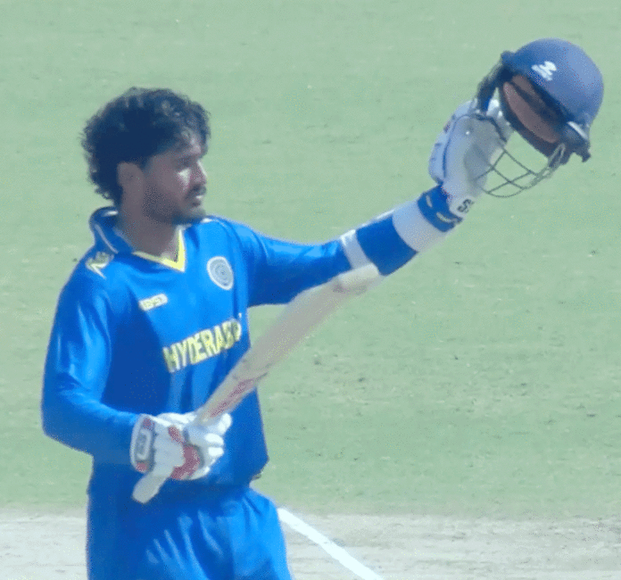 راجکوٹ، 06 جنوری (یو این آئی) تیز گیندباز محمد سراج نے ہندوستانی ون ڈے ٹیم میں واپسی کا جشن بنگال کے خلاف 58 رن دے کر چار وکٹ حاصل کر کے منایا اور منگل کو یہاں وجے ہزارے ٹرافی ایلیٹ گروپ بی کے مقابلے میں حیدرآباد کو 107 رن کی شاندار کامیابی دلائی۔بنگال کی جانب سے شہباز احمد کی 108 رن کی ناٹ آوٹ اور جدو جہد بھری اننگز بھی ٹیم کو شکست سے نہ بچا سکی۔پہلے بلے بازی کرتے ہوئے حیدرآباد کے سلامی بلے باز امن راو نے غیر معمولی کارکردگی کا مظاہرہ کرتے ہوئے 154 گیندوں پر شاندار 200 رن بنائے اور تقریباً تنِ تنہا ٹیم کو مقررہ 50 اوور میں پانچ وکٹ کے نقصان پر 352 رن کے بڑے اسکور تک پہنچایا۔ بنگال کی طرف سے محمد شمیع (70 رن دے کر تین وکٹ)، شہباز احمد (57 رن دے کر ایک وکٹ) اور روہت (61 رن دے کر ایک وکٹ) نسبتاً کامیاب گیندباز رہے۔