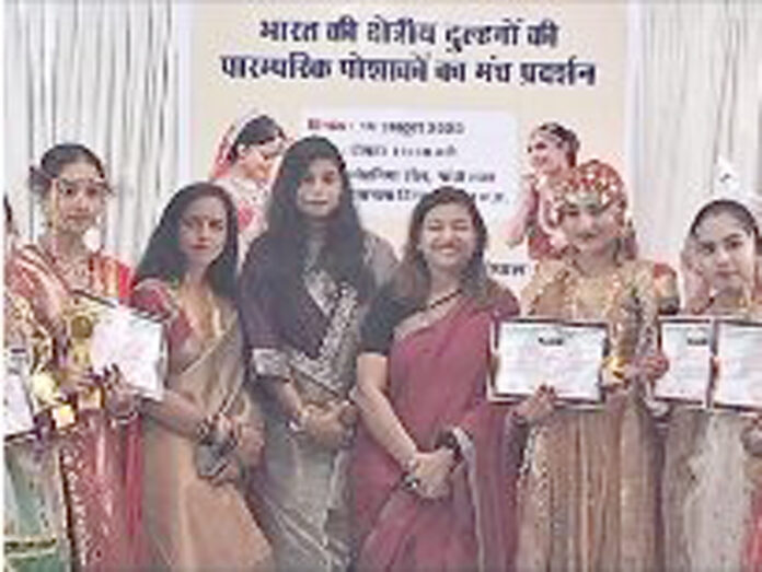 بھوپال 17اکتوبر: گاندھی بھون میںاسکول و کالج کی طالبات کے لئے دلہن کے روایتی لباس و پوشاک کا مقابلہ منعقد کیا گیا ۔ جس میں بے بی کانوینٹ اسکول جہانگیر آباد کی طالبات نے دلہن کے روایتی لباس میںٰ شاندار مظاہرہ کیا اور اسکول کی طالبہ عرشیہ خان نے پہلا ایوارڈ حاصل کیا ، جبکہ طاہرہ فاطمہ کو خصوصی ایوارڈ سے نوازا گیا۔
