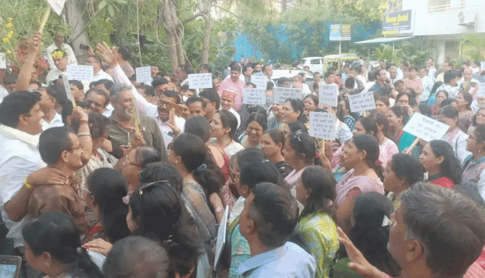 بھوپال، 18 اپریل: مدھیہ پردیش کے دارالحکومت بھوپال میں ہفتہ کے روز ’ادھیاپک-شکشک سنیکت مورچہ‘ کے بینر تلے پوری ریاست سے آئے ہوئے اساتذہ نے ایک بڑا احتجاجی مظاہرہ کیا۔ ’وزیر اعلیٰ انرودھ یاترا‘ کے تحت بی ایچ ای ایل کے دسہرہ میدان میں منعقدہ اس احتجاج میں ریاست کے مختلف اضلاع سے آئے ہوئے 50 ہزار سے زائد اساتذہ نے شرکت کی۔ اساتذہ نے ایم پی نگر کے ایس ڈی ایم ایل کے کھرے کو میمورنڈم سونپ کر اپنے مطالبات پیش کیے اور پرامن طریقے سے احتجاج ختم کیا۔ آزاد ادھیاپک سنگھ کے صدر بھرت پٹیل اور سنیکت مورچہ کے رہنماؤں نے دوٹوک الفاظ میں حکومت کو متنبہ کیا کہ اگر ان کے جائز مطالبات پر جلد فیصلہ نہ لیا گیا تو جون کے مہینے میں ریاست بھر میں ایک بڑی تحریک شروع کی جائے گی۔