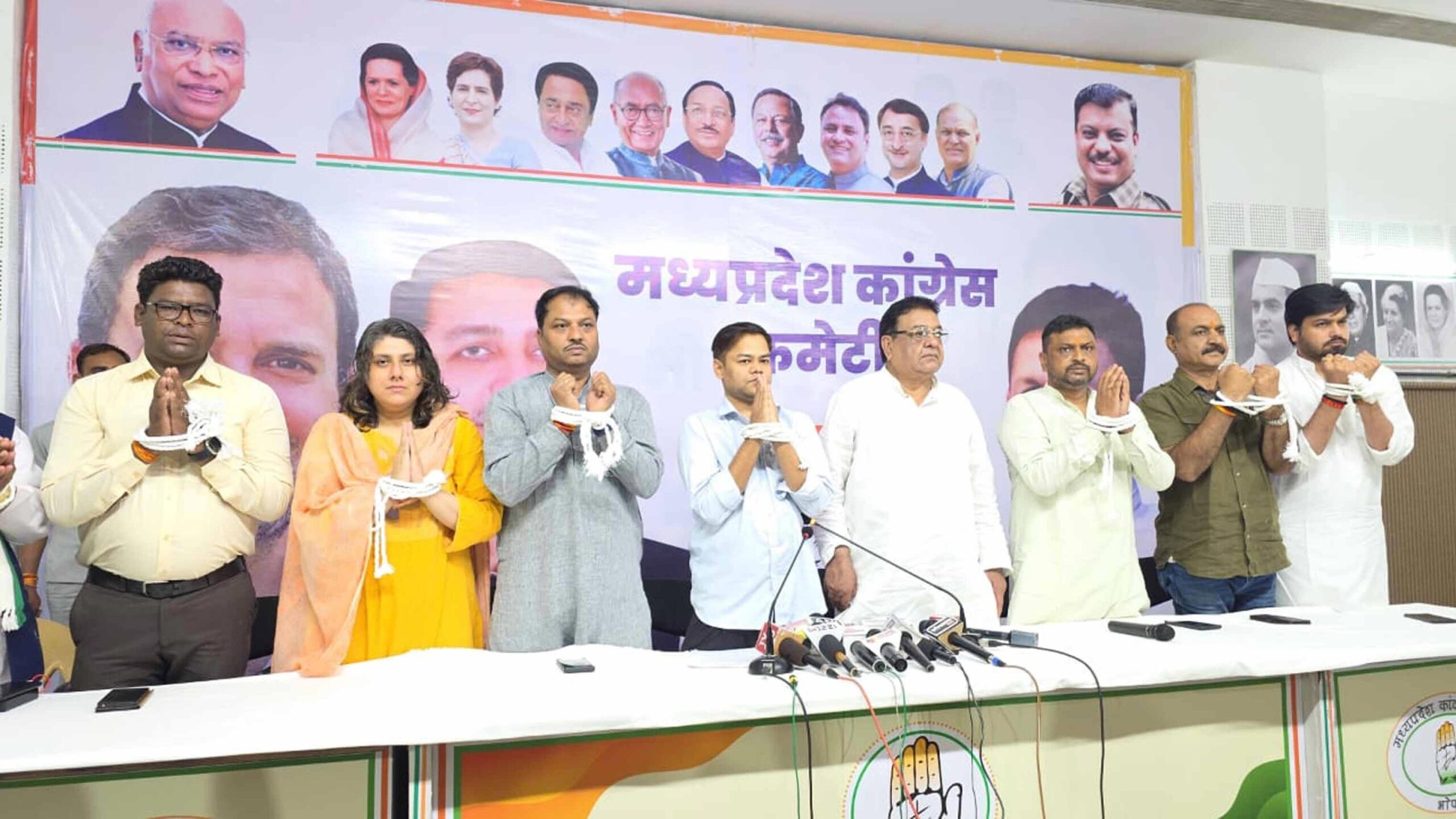 بھوپال، 3 جولائی: گزشتہ دنوں ڈی جی پی کے ذریعہ دئے گئے بیان کو لیکر کانگریس مسلسل احتجاج کر رہی ہے۔ جمعرات کو بھوپال میں کانگریس نے رسی سے ہاتھ باندھ کر انوکھا احتجاج کیا۔ ریاستی کانگریس کے میڈیا صدر مکیش نائک اور کانگریس کے ترجمان متھن اہیروار نے پی سی سی میں پریس کانفرنس کی۔ اس دوران متھن اہیروار نے کہا کہ بی جے پی ڈیجیٹل انڈیا کی نہیں بلکہ ڈیجیٹل ٹریپ کی حکومت ہے۔ وہ آن لائن سٹہ، جعلی لون ایپس اور ڈیجیٹل فراڈ پر کھلی چھوٹ دے کر اپنی حکومت بچا رہی ہے۔ اس دوران کانگریس نے بی جے پی کے نئے ریاستی صدر ہیمنت کھنڈیلوال سے سوالات پوچھے ہیں۔