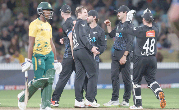 ہیملٹن،17 مارچ (یواین آئی )ہیملٹن میں کھیلے گئے دوسرے ٹی 20 میچ میں نیوزی لینڈ نے آل راؤنڈ کارکردگی کی بدولت جنوبی افریقہ کو 68 رنز سے شکست دے کر پانچ میچوں کی سیریز 1-1 سے برابر کر دی ہے۔ ڈیون کونوے کو ان کی شاندار بیٹنگ پر ‘پلیئر آف دی میچ قرار دیا گیا۔ نیوزی لینڈ کے 176 رنز کے ہدف کے تعاقب میں جنوبی افریقہ کی ٹیم صرف 107 رنز پر ڈھیر ہو گئی۔جنوبی افریقہ نے ٹاس جیت کر پہلے بالنگ کا فیصلہ کیا، جس کے جواب میں نیوزی لینڈ نے مقررہ 20 اوورز میں 6 وکٹوں کے نقصان پر 175 رنز بنائے: