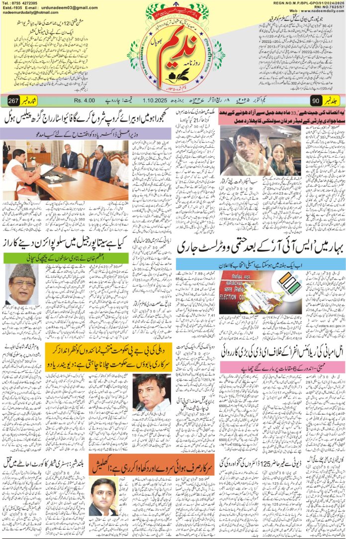 ہوم ای -پپیر epaper 01-10-2025 ای -پپیر epaper 01-10-2025 September 30, 2025 10 FacebookTwitterPinterestWhatsApp متعلقہ مضامینزیادہ مصنف کی طرف سے epaper 08-03-2026 epaper 07-03-2026 epaper 06-03-2026