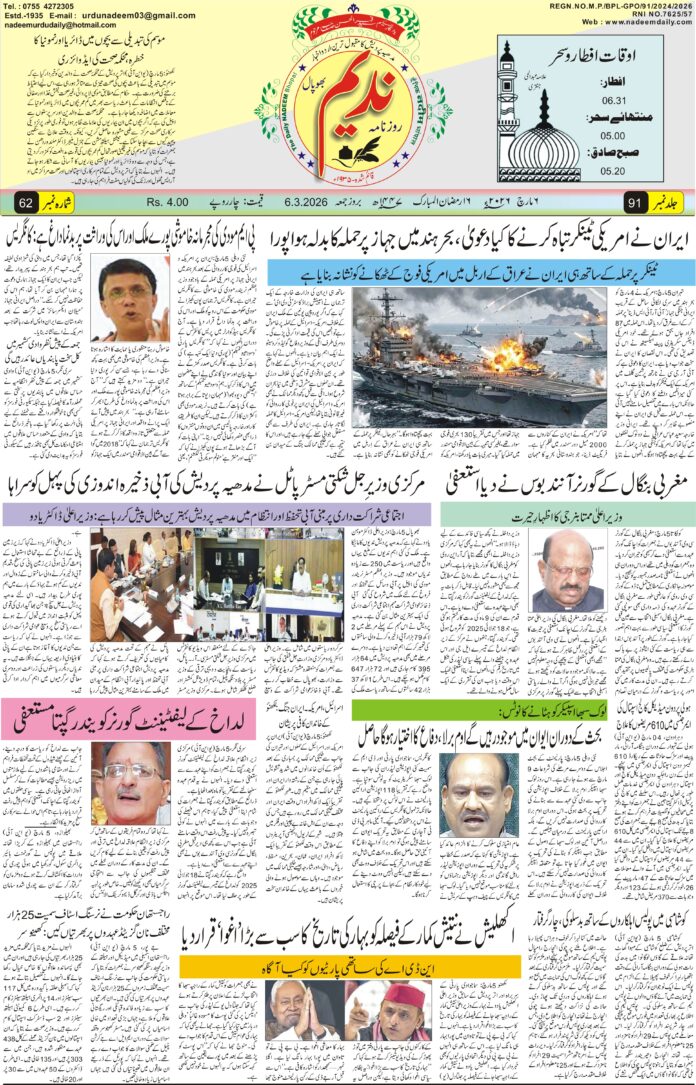 ہوم ای -پپیر epaper 06-03-2026 ای -پپیر epaper 06-03-2026 March 6, 2026 6 FacebookTwitterPinterestWhatsApp متعلقہ مضامینزیادہ مصنف کی طرف سے epaper 07-03-2026 epaper 04-03-2026 epaper 03-03-2026