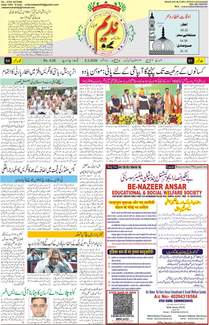 ہوم ای -پپیر epaper 08-03-2026 ای -پپیر epaper 08-03-2026 March 7, 2026 5 FacebookTwitterPinterestWhatsApp متعلقہ مضامینزیادہ مصنف کی طرف سے epaper 07-03-2026 epaper 06-03-2026 epaper 04-03-2026