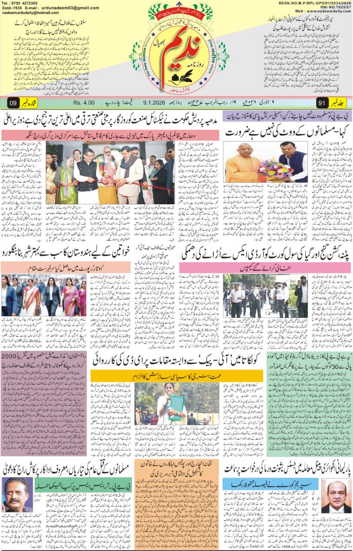 ہوم Uncategorized epaper 09-01-2026 Uncategorized epaper 09-01-2026 January 8, 2026 7 FacebookTwitterPinterestWhatsApp متعلقہ مضامینزیادہ مصنف کی طرف سے رونے سے کام نہیں چلے گا، راہل گاندھی کی طرح ناانصافی کے خلاف لڑیے پنجاب میں کھڑگے کا کجریوال پر حملہ مرکزی کابینہ نے کیرالہ کا نام بدل کر ’کیرلم‘ کرنے کو دی منظوری کابینہ میٹنگ میں ہوئے کئی اہم فیصلے سکندر رضا کا بڑا اعلان: زمبابوے کے لیے آئی پی ایل اور پی ایس ایل بھی چھوڑ سکتا ہوں