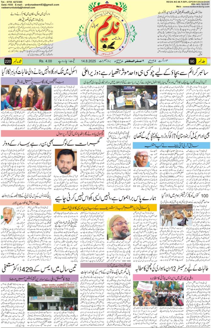 ہوم ای -پپیر epaper 14-08-2025 ای -پپیر epaper 14-08-2025 August 13, 2025 22 FacebookTwitterPinterestWhatsApp متعلقہ مضامینزیادہ مصنف کی طرف سے epaper 08-03-2026 epaper 07-03-2026 epaper 06-03-2026