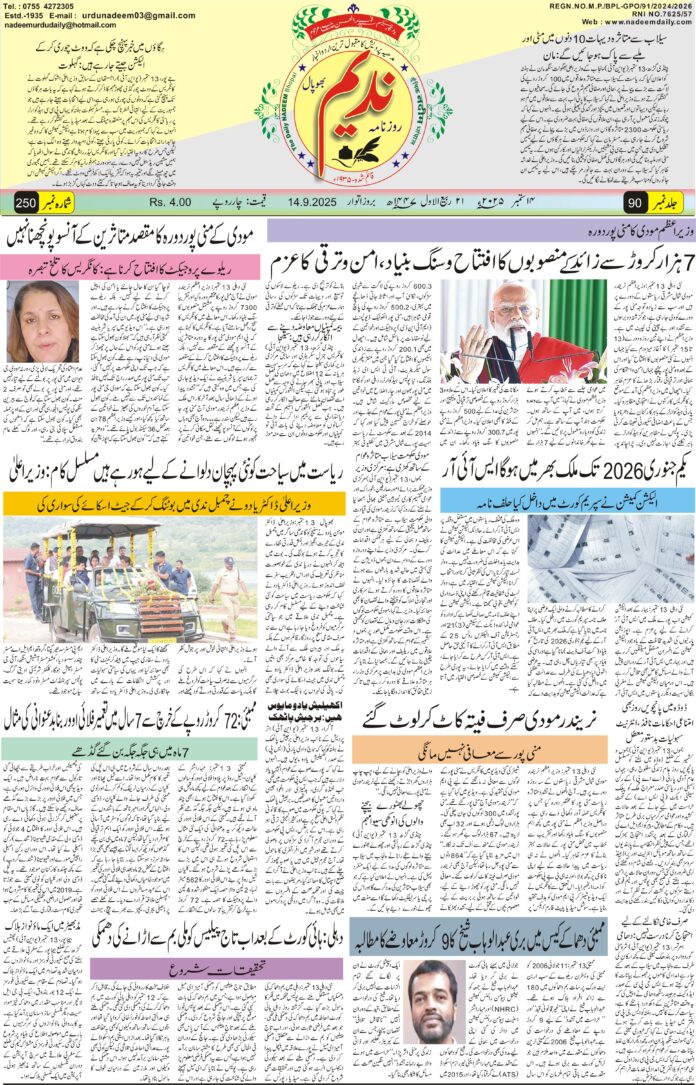 © Nadeem Urdu Daily Newspaper Bhopal