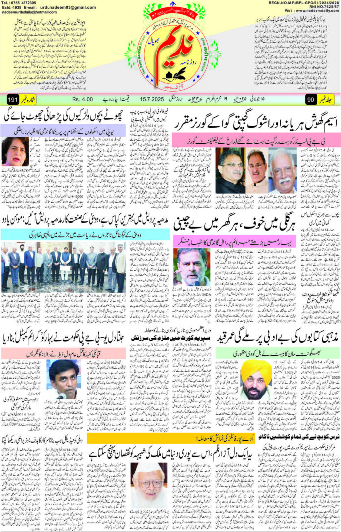 © Nadeem Urdu Daily Newspaper Bhopal