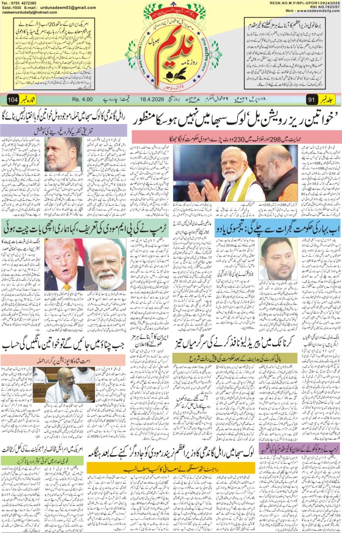 ہوم ای -پپیر epaper 18-04-2026 ای -پپیر epaper 18-04-2026 April 17, 2026 9 FacebookTwitterPinterestWhatsApp متعلقہ مضامینزیادہ مصنف کی طرف سے epaper 23-04-2026 epaper 22-04-2026 eppaer 21-04-2026