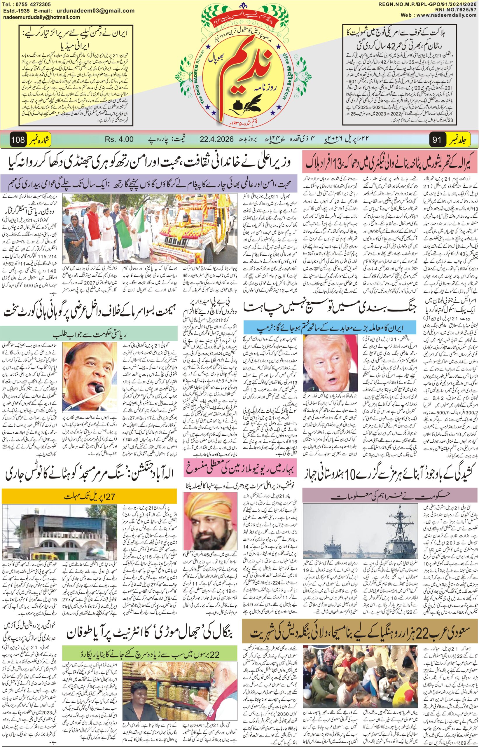 ہوم ای -پپیر epaper 22-04-2026 ای -پپیر epaper 22-04-2026 April 21, 2026 12 FacebookTwitterPinterestWhatsApp متعلقہ مضامینزیادہ مصنف کی طرف سے epaper 23-04-2026 eppaer 21-04-2026 epaper 20-04-2026
