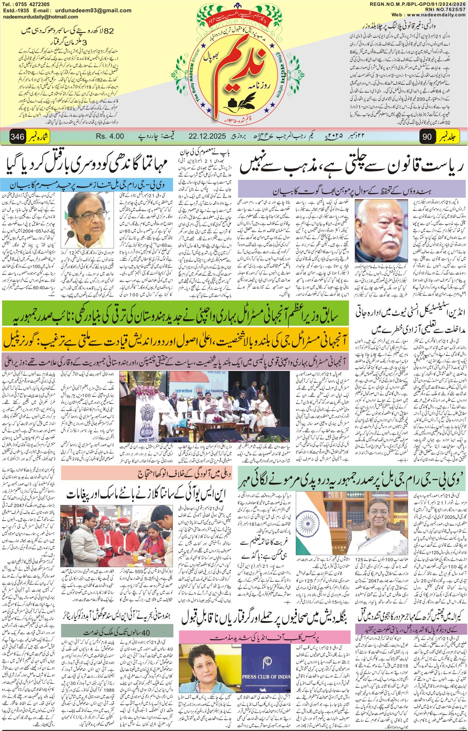 © Nadeem Urdu Daily Newspaper Bhopal