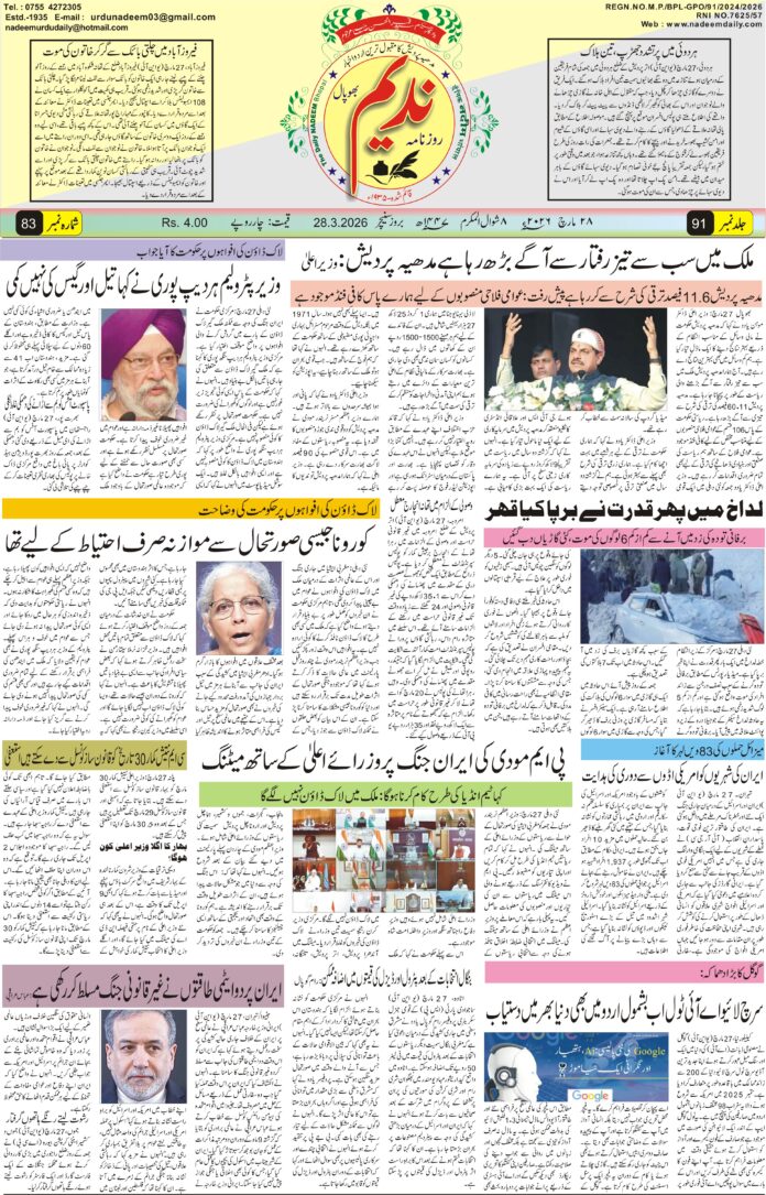 ہوم ای -پپیر epaper 28-03-2026 ای -پپیر epaper 28-03-2026 March 27, 2026 14 FacebookTwitterPinterestWhatsApp متعلقہ مضامینزیادہ مصنف کی طرف سے epaper 23-04-2026 epaper 22-04-2026 eppaer 21-04-2026