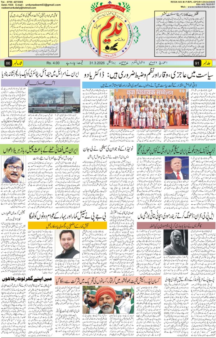 ہوم ای -پپیر epaper 31-03-2026 ای -پپیر epaper 31-03-2026 March 30, 2026 10 FacebookTwitterPinterestWhatsApp متعلقہ مضامینزیادہ مصنف کی طرف سے epaper 23-04-2026 epaper 22-04-2026 eppaer 21-04-2026