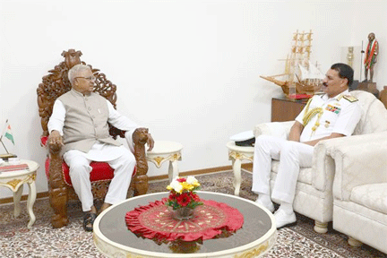 بھوپال:13؍اگست:گورنر مسٹر منگوبھائی پٹیل سے ہندوستانی بحریہ کے سربراہ ایڈمرل مسٹردنیش کمار ترپاٹھی نے بدھ کو گورنر ہائوس میں خیرسگالی ملاقات کی۔ گورنر مسٹرپٹیل کاایڈمرل مسٹر ترپاٹھی نے یادگاری نشان پیش کرتے ہوئے استقبال کیا اور عصری مسائل پر رسمی بات چیت کی۔