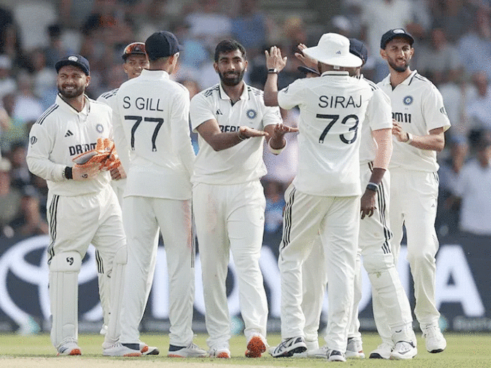 لیڈز:21جون:تیند ولکر اینڈرسن ٹرافی کے پہلے ٹیسٹ کی پہلی اننگز میں بھارت 471 رنز پر آل آؤٹ ہو گیا۔ چائے تک انگلینڈ نے پہلی اننگز میں دو وکٹوں پر 165 رنز بنا لیے ہیں۔ اولی پوپ اور جو روٹ ناقابل شکست ہیں۔ بین ڈکٹ (62 رنز) کو جسپریت بمراہ نے بولڈ کیا۔ انہوں نے جیک کراؤلی (4 رنز) کو کرونا نائر کے ہاتھوں کیچ کرایا۔جو روٹ 34ویں اوور میں ڈی آر ایس لے کر آؤٹ ہونے سے بچ گئے۔ محمد سراج کی آنے والی گیند روٹ کے پاؤں سے ٹکرائی۔ اپیل پر فیلڈ امپائر نے انہیں آؤٹ بھی دیا۔ ایسے میں روٹ نے ڈی آر ایس کے لیے کہا۔ ری پلے دیکھنے سے صاف معلوم ہوتا تھا کہ گیند لیگ اسٹمپ سے باہر جا رہی تھی۔قبل ازیںہیڈنگلے کرکٹ گراؤنڈ میں جاری میچ کے دوسرے دن ہفتہ کو ہندوستانی ٹیم نے 359/3 کے سکور سے کھیلنا شروع کیا اور 112 رنز کے اسکور پر آخری 7 وکٹیں گنوا دیں۔ کپتان شبمن گل نے 147، رشبھ پنت نے 134 اور یشسوی جیسوال نے 101 رنز بنائے۔ کے ایل راہل نے 42 رنز کا تعاون کیا۔