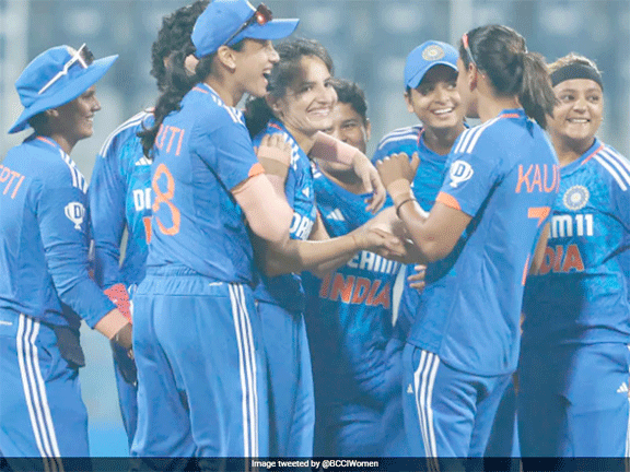 چیسٹر-لی-اسٹریٹ، 23 جولائی (یو این آئی)کپتان ہرمن پریت کور (102 رنز) کی شاندار سنچری اننگ اور کرانتی گوڑ (6وکٹیں) کی بہترین گیندبازی کی بدولت ہندوستانی خواتین ٹیم نے منگل کو تیسرے ایک روزہ میچ میں انگلینڈ کو 13 رنز سے شکست دے دی۔ اس کے ساتھ ہی ہندوستان نے تین میچوں کی سیریز 1-2 سے اپنے نام کر لی۔ 319 رنز کے ہدف کا تعاقب کرنے اتری انگلینڈ خواتین ٹیم کی شروعات انتہائی خراب رہی اور اس نے صرف 8 رنز پر اپنے دونوں اوپنرز کے وکٹ گنوا دیے۔ ٹیمی بیومونٹ (2) اور ایمی جونز (4) کو کرانتی گوڑ نے آؤٹ کیا۔ اس کے بعد ایما لیمب اور نیٹ شیور برنٹ نے اننگز کو سنبھالا۔ دونوں کے درمیان تیسرے وکٹ کے لیے 162 رنز کی شراکت ہوئی۔ جب تک یہ دونوں کھیل رہی تھیں، ایسا لگ رہا تھا کہ انگلینڈ باآسانی یہ میچ جیت لے گا لیکن 31ویں اوور میں شری چرنی نے ایما لیمب کو 81 گیندوں پر 68 رنز پر بولڈ کر کے تیسرا جھٹکا دیا۔پھر 35ویں اوور میں دیپتی شرما نے سنچری کے قریب پہنچ رہی نیٹ شیور برنٹ کو 98 رنز پر وکٹ کیپر رچا گھوش کے ہاتھوں کیچ آؤٹ کرایا۔ اس کے بعد سوفیہ ڈنکلی اور ایلس ڈیویڈسن رچرڈز نے اننگز سنبھالی مگر ہندوستانی بولرز نے انہیں کریز پر زیادہ دیر ٹکنے نہیں دیا۔ پانچواں وکٹ سوفیہ ڈنکلی (34) کے طور پر گرا، جبکہ ایلس ڈیویڈسن رچرڈز (44) کو کرانتی گوڑ نے رادھا یادو کے ہاتھوں کیچ آؤٹ کروایا۔ شارلٹ ڈین (21)، لارین فائلر (0) اور لارین بیل (7) کو بھی گوڑ نے آؤٹ کیا۔ ہندوستان نے 49.5 اوور میں انگلینڈ کو 305 رنز پر آل آؤٹ کر کے 13 رنز سے میچ جیت لیا۔
