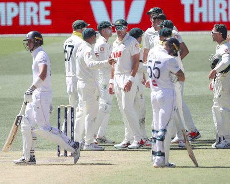 جو روٹ کو بھی نئی زندگی ملی، گیفانی کو یقین تھا کہ پیڈ پر لگا اندرونی کنارہ سیدھا کیری کے دستانے میں گیا تھا۔ ان سب سے اس بات پر کوئی فرق نہیں پڑا کہ انگلینڈ نے ایڈیلیڈ میں 40 ڈگری سیلسیس کے قریب درجہ حرارت میں ایک مرتبہ پھر کمزور بلے بازی سے اپنی امیدوں پر پانی پھیر دیا۔