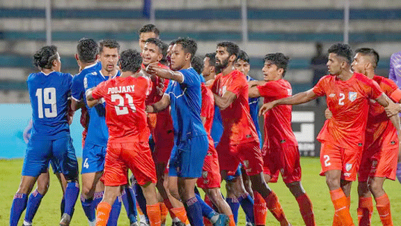 کولمبو، 26 ستمبر (یو این آئی) ہندوستان کی انڈر 17 مردوں کی قومی ٹیم نے نیپال کو 3-0 سے شکست دے کر سیف انڈر 17 چیمپئن شپ 2025 کے فائنل میں جگہ پکی کر لی۔ جمعرات کی شب ریس کورس انٹرنیشنل اسٹیڈیم میں کھیلے گئے سیمی فائنل میں دفاعی چیمپئن نے بالآخر اپنے غلبے کو گول میں تبدیل کرتے ہوئے بنگلہ دیش کے ساتھ ٹائٹل کا ٹکراؤ قائم کیا، جس نے اس سے قبل پاکستان کو 2-0 سے شکست دی تھی۔ وانگکھیرکپم گنلیبا (61 ویں منٹ) اور متبادل کھلاڑی اذلان شاہ خان (80 ویں) اور ڈائمنڈ سنگھ تھوکچوم (90 ویں) نے گول کیے کیونکہ بلیو کولٹس نے ٹورنامنٹ میں مسلسل چوتھی جیت درج کی۔ ہاف ٹائم تک اسکور بغیر کسی گول کے برابر رہا۔ دفاعی طور پر ہندوستان پوری طرح ثابت قدم رہا۔ مڈ فیلڈ نے نظم و ضبط کے ساتھ جگہ بنائی، جبکہ بیک لائن نے گزرنے والے چینلز کو بند کر دیا، جس سے نیپال کے پاس طویل فاصلے کی کوششوں کا سہارا لینے کے علاوہ کوئی آپشن نہیں بچا۔