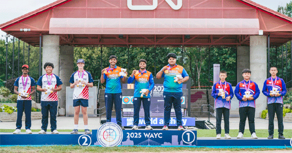 وِنِی پَیگ (کینیڈا)، 23 اگست (یواین آئی) — ہندوستانی تیر اندازی کی ٹیموں نے ورلڈ آرچری یوتھ چیمپئن شپ 2025 میں شاندار کارکردگی کا مظاہرہ کرتے ہوئے مردوں کے انڈر-18 اور انڈر-21 ٹیم ایونٹس میں سونے کے تمغے جیتے۔انڈر-21 کمپاؤنڈ ٹیم ایونٹ میں کوشل دلال، اپار مِہیر نِتِن اور گنیش منی رتنم تھرو مورُو کی تکڑی نے جرمنی کو فائنل میں سنسنی خیز مقابلے کے بعد شکست دی۔ چار سیٹوں کے اختتام پر اسکور 233-233 برابر رہا، جس کے بعد شوٹ آف میں ہندوستان نے بازی مار لی۔ اس سے پہلے ہندوستان نے کوارٹر فائنل میں اسرائیل کو 235-233 اور سیمی فائنل میں جنوبی کوریا کو 233-228 سے ہرایا تھا۔انڈر-18 فائنل میں موہت ڈاگر، یوگیش جوشی اور دیوانش سنگھ کی ٹیم نے امریکہ کے خلاف ہاف ٹائم تک 9 پوائنٹس کی برتری بنا لی اور مقابلہ 224-222 سے جیت لیا۔ کوالیفیکیشن میں سب سے اوپر رہنے کی وجہ سے یہ ٹیم براہِ راست فائنل میں پہنچی تھی۔ دوسری جانب، ہندوستانی انڈر-18 خواتین کمپاؤنڈ ٹیم کانسی کے مقابلے میں میکسیکو سے 221-210 سے ہار گئی، جبکہ انڈر-21 خواتین ٹیم کوارٹر فائنل میں باہر ہو گئی۔آئندہ دو دنوں میں ہندوستان انفرادی ایونٹس میں حصہ لے گا۔