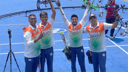 گوانگژو (جنوبی کوریا)، 07 ستمبر (یو این آئی) رشبھ یادو، اَمن سینی اور پرتھمیش پھوگے پر مشتمل ہندوستانی مردوں کی کمپاؤنڈ ٹیم نے اتوار کو شاندار کارکردگی دکھاتے ہوئے ورلڈ آرچری چیمپئن شپ 2025 میں طلائی تمغہ جیت کر تاریخ رقم کر دی۔آج یہاں کھیلے گئے فائنل مقابلے میں ہندوستانی کمپاؤنڈ ٹیم نے فرانس کو 235-233 سے شکست دی۔ یہ پہلا موقع ہے جب ہندوستان نے مردوں کی کمپاؤنڈ ٹیم ایونٹ میں عالمی چیمپئن شپ کا طلائی تمغہ حاصل کیا ہے۔فائنل میں ہندوستان کی شروعات کچھ کمزور رہی اور وہ پہلے سیٹ میں 57-59 سے پیچھے ہو گئے، لیکن اس کے بعد شاندار واپسی کرتے ہوئے ہر سیٹ میں بہتر کارکردگی دکھائی اور فرانس کی چیلنج کو 235-233 پر ختم کر دیا۔پہلے راؤنڈ میں بائی ملنے کے بعد ہندوستان نے آسٹریلیا کو شوٹ آف میں ہرایا، کوارٹر فائنل میں امریکہ کو 234-233 سے ہرایا اور سیمی فائنل میں ترکی کو 234-232 سے شکست دی۔ہندوستان کے نوجوان تیر انداز رشبھ یادو نے اپنی پہلی عالمی چیمپئن شپ میں شاندار کارکردگی پیش کی۔ 23 سالہ رشبھ نے کوالیفکیشن میں 709 پوائنٹس کے ساتھ آٹھواں مقام حاصل کیا اور مکسڈ ٹیم ایونٹ میں بھی بہترین کھیل کا مظاہرہ کیا۔ انہوں نے ہندوستان کی صفِ اول کی کمپاؤنڈ خاتون تیر انداز جیوتی سوریہکھا وینم کے ساتھ جوڑی بنا کر مکسڈ ٹیم میں چاندی کا تمغہ جیتا۔ دونوں نے جرمنی، ایل سلواڈور اور چینی تائی پے کو شکست دے کر فائنل میں جگہ بنائی۔
