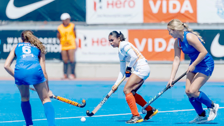 سینٹیاگو (چلی) ،08 دسمبر (یو این آئی ) ہندوستانی جونیئر ویمن ہاکی ٹیم نے ایف آئی ایچ ہاکی جونیئر ورلڈ کپ 2025 کے 9ویں سے 16ویں پوزیشن کے کلاسیفیکیشن میچ میں ویلز کو 3-1 سے شکست دے کر ایک شاندار کارکردگی کا مظاہرہ کیا۔سینٹیاگو میں سنٹرو ڈیپورٹیوو ڈی ہاکی سیسپیڈ، اسٹاڈیو نیشنل میں کھیلے گئے اس سنسنی خیز مقابلے میں ہندوستان نے اپنی برتری ثابت کی۔ہندوستان کی جانب سے حنا بانو نے 14ویں منٹ ، سنیلیتا ٹوپو نے 24ویں،اور ایشیکا نے 31ویں منٹ میں گول کئے۔ویلس کی جانب سے واحد گول ایلوئس موٹنے نے 52 ویں منٹ میں کیا۔ ہندوستانی ٹیم نے میچ کا آغاز نہایت جارحانہ انداز میں کیا اور پہلے 30 سیکنڈ میں ہی پینلٹی کارنر حاصل کر لیا،میچ کے آغاز میں ہی ہندوستان نے جارحانہ کھیل کا مظاہرہ کرتے ہوئے پہلے 30 سیکنڈ میں پینالٹی کارنر حاصل کیا اور ویلز پر دباؤ قائم رکھا۔ متعدد مواقع بنانے کے باوجود ابتدائی برتری حاصل نہ ہوسکی۔ دوسری جانب ویلز کو پینالٹی اسٹروک سے آگے نکلنے کا سنہرا موقع ملا، مگر ہندوستانی گول کیپر ندھی نے شاندار بچاؤ کرتے ہوئے یہ کوشش ناکام بنا دی۔ پہلے کوارٹر کے آخری لمحات میں ساکشی رانا کی عمدہ پاس کی بدولت حنا بانو نے پہلا شاندار گول کع دیا۔برتری کو بڑھانے کے مقصد سے ہندوستان نے دوسرے کوارٹر کے آغاز میں ایک اور پینلٹی کارنر حاصل کرکے ویلز پر دباؤ برقرار رکھا۔ مسلسل حملوں کے نتیجے میں ساکشی رانا کے ابتدائی شاٹ سے گیند سُنَیلیتہ ٹوپّو کے پاس پہنچی، جنہوں نے قریب سے نشانہ خطا کیے بغیر اسکور 2-0 کر دیا۔دوسرے ہاف کے شروع میں ہی ہندوستان نے سبقت کو 3-0 تک پہنچا دیا، جب ویلز کی گول کیپر سے ری باؤنڈ ہوکر گیند اشیکا کے پاس آئی اور انہوں نے اسے آسانی سے جال میں پہنچا دیا۔جویتی سنگھ کی قیادت میں ہندوستانی ٹیم نے میچ کی رفتار پر مکمل کنٹرول رکھا، ویلز کی دفاعی لائن کو بار بار چیلنج کیا اور انہیں زیادہ تر اپنے ہاف میں ہی محصور کیے رکھا۔ تیسرے کوارٹر کے اختتام تک ہندوستان کا دباؤ برقرار رہا۔ آخری کوارٹر میں ویلز کو ایک موقع ضرور ملا، جس کا فائدہ ایلوئیس موٹ نے اٹھاتے ہوئے اپنی ٹیم کے لیے ایک گول کر دیا، ہندوستان اب منگل کو جونیئر ویمن ہاکی ورلڈ کپ کے اپنے اگلے میچ میں یوراگوئے سے مقابلہ کرے گا۔ اس میچ کی فاتح ٹیم 9ویں اور ہارنے والی ٹیم 11ویں پوزیشن کے لیے کھیلے گی۔