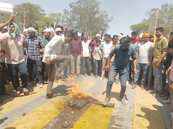 رائسین:15؍اپریل(پریس ریلیز) ضلع رائسین کی غیرت گنج تحصیل میں بدھ کے روز کسانوں کے مختلف مسائل کو لے کر زبردست اور شدید احتجاج دیکھنے کو ملا۔ کرانتی کاری کسان تنظیم مدھیہ بھارت کے بینر تلے بڑی تعداد میں کسانوں نے اکٹھا ہو کر انتظامیہ کے خلاف بھرپور مظاہرہ کیا۔ اس دوران کسانوں نے ایک جانب ایس ڈی ایم کو یادداشت پیش کی، وہیں خریداری (اپارجن) کا کام شروع نہ ہونے پر غصے میں آ کر بھوپال-ساگر مرکزی سڑک پر چکہ جام بھی کیا اور مرکزی وزیر زراعت و وزیر اعلیٰ کے پتلے نذرِ آتش کیے۔