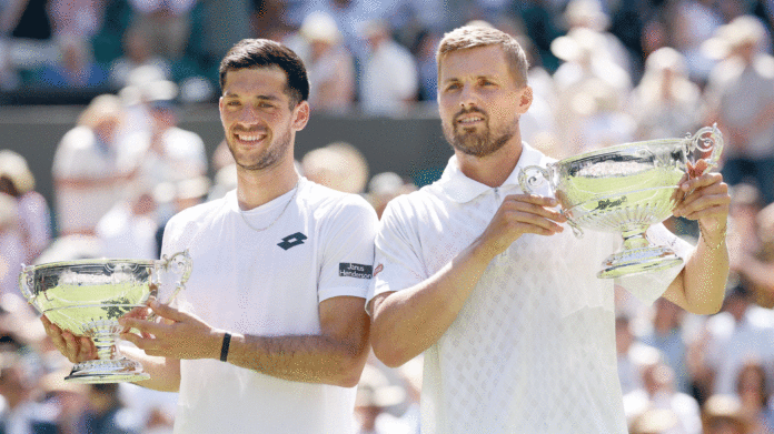 لندن، 12 جولائی (یواین آئی) جولین کیش اور لائیڈ گلاسپول نے 89 سال میں ومبلڈن میں مردوں کا ڈبلز ٹائٹل جیتنے والی پہلی برطانوی جوڑی بن کر تاریخ رقم کر دی۔ اس جوڑی نے آج آسٹریلیا کے رنکی ہجیکاتا اور ڈچ کھلاڑی ڈیوڈ پیل کی غیر سیڈڈ جوڑی کو 6-2، 7-6 (7-3) سے ہرا کر اپنا پہلا گرینڈ سلیم ٹائٹل حاصل کیا۔ 28 سالہ کیش اور 31 سالہ گلاسپول 1960 میں مائیک ڈیوس اور بوبی ولسن کے بعد فائنل میں پہنچنے والی پہلی برطانوی جوڑی بن چکی تھیں۔لیکن بی بی سی کی ایک خبر کے مطابق، 1936 میں ومبلڈن میں پیٹ ہیوز اور ریمنڈ ٹکی کے بعد یہ پہلا موقع ہے جب دو برطانوی کھلاڑی کسی گرینڈ سلیم میں مردوں کے ڈبلز چیمپئن بنے ہیں۔گلاسپول نے سنسنی خیز میچ کے بعد کہا، جب آپ اسے اس طرح کہتے ہیں تو یہ ناقابل یقین لگتا ہے۔ میں نے اس کے بارے میں زیادہ نہیں سوچا تھا۔ ہم اس دن کو زندگی بھر نہیں بھولیں گے۔”