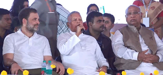 راہل گاندھی نے اپنے خطاب میں الیکشن کمیشن پر سوال اٹھاتے ہوئے کہا کہ یہ لڑائی آئین کو بچانے کی ہے۔ انہوں نے الزام لگایا کہ جہاں بھی انتخابات ہوتے ہیں بی جے پی کامیاب ہو جاتی ہے اور اس کے پیچھے ووٹر لسٹ میں گڑبڑ ہے۔ راہل گاندھی نے دعویٰ کیا کہ مہاراشٹر میں ایک کروڑ نئے ووٹر بنائے گئے اور یہ سب ووٹ بی جے پی کو ملے۔ گرمی اور حبس کے باوجود بڑی تعداد میں عوام اس ریلی میں شریک ہوئے۔ عوام نے نعرے لگائے اور جلسے کے دوران لالو پرساد کے خطاب پر پرجوش ردعمل دیا۔ تیجسوی یادو نے بھی عوام کا شکریہ ادا کیا اور کہا کہ ووٹ کا حق ہر شہری کو آئین نے دیا ہے، اسے چھینا نہیں جا سکتا۔ انہوں نے الزام لگایا کہ ووٹر لسٹ سے زندہ افراد کے نام کاٹے جا رہے ہیں اور یہ عمل بی جے پی کے اشارے پر ہو رہا ہے۔ اس ریلی کو اپوزیشن اتحاد کے لیے ایک بڑا مظاہرہ قرار دیا جا رہا ہے جس میں کانگریس اور آر جے ڈی کے بڑے رہنما ایک ساتھ اسٹیج پر موجود تھے۔
