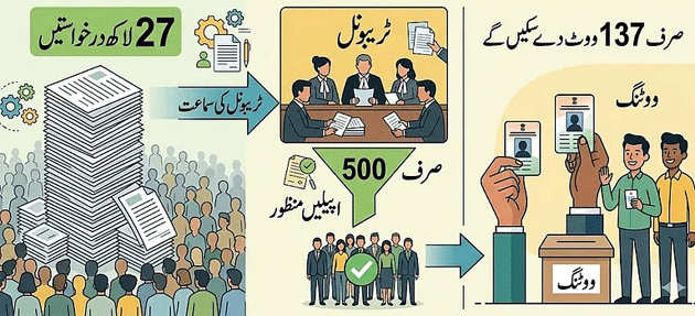 کولکاتا 22اپریل: مغربی بنگال ایس آئی آر سے متعلق ایک اہم خبر سامنے آئی ہے۔ 27 لاکھ اپیلوں میں سے ٹریبونل نے صرف 500 اپیلیں ہی منظور کی ہے۔ ہندی نیوز پورٹل ’ٹی وی 9 بھارت ورش‘ پر ذرائع کے حوالے سے شائع خبر کے مطابق 500 کیس کی سماعت کے بعد سپلیمنٹری ووٹر لسٹ میں صرف 137 ووٹرس ہی جوڑے گئے ہیں۔ ان 137 ووٹرس کو ووٹ ڈالنے کی اجازت دی گئی ہے۔ دراصل اس تعلق سے گزشتہ دنوں سپریم کورٹ نے اہم حکم دیا تھا۔ واضح رہے کہ سپریم کورٹ نے کہا تھا کہ ٹریبونل میں جن کی اپیل منظور کر لی جائے گی وہ لوگ 23 اور 29 اپریل کو ووٹ دے سکیں گے۔ سپریم کورٹ نے اس کے لیے آرٹیکل 142 کے خصوصی اختیارات کا استعمال کیا تھا۔ وزیر اعلیٰ ممتا بنرجی نے سپریم کورٹ کے اس فیصلہ پر خوشی کا اظہار کیا تھا۔ مغربی بنگال میں 2 مرحلوں میں 23 اور 29 اپریل کو ووٹنگ ہے۔ پہلے مرحلہ میں 152 سیٹوں پر ووٹ ڈالے جائیں گے جبکہ دوسرے مرحلہ میں 142 سیٹوں پر ووٹنگ ہوگی۔