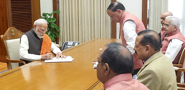 نئی دہلی 13فروری: وزیر اعظم نریند مودی نے جمعہ (13 فروری) کو اپنے نئے دفتر ’سیوا تیرتھ‘ کا افتتاح کیا۔ پی ایم او آج سے رائسینا ہل میں واقع ساؤتھ بلاک سے ’سیوا تیرتھ‘ میں منتقل ہو جائے گا۔ ’سیوا تیرتھ‘ میں وزیر اعظم نریندر مودی کے دفتر کے علاوہ نیشنل سیکورٹی کاؤنسل سیکرٹریٹ (این ایس سی ایس) اور کابینہ سیکرٹریٹ بھی ہوں گے۔ اس موقع پر وزیر اعظم مودی نے ’سیوا تیرتھ‘ میں پہلی بار 4 اہم فائلوں پر دستخط کیے۔ وزیر اعظم مودی نے ’سیوا تیرتھ‘ میں منتقل ہونے کے بعد سب سے پہلے ’پی ایم ریلیف اسکیم‘ کو منظوری دی۔ یہ منصوبہ ہر شہری کے لیے لائف لائن ثابت ہوگا۔ سڑک حادثہ میں زخمی لوگوں کو 1.5 لاکھ روپے تک کیش لیس علاج ملے گا۔ اس کا مقصد یہ یقینی کرنا ہے کہ فوری طور پر طبی مدد نہ ملنے سے کوئی جان نہ جائے۔ یہ فیصلہ نوجوانوں اور عام شہریوں کے لیے بہت راحت دینے والا ہے۔ ’لکھپتی دیدی‘ کا ہدف دوگنا کر کے 6 کروڑ کر دیا گیا۔ حکومت نے پہلے سے ہی 3 کروڑ ’لکھپتی دیدی‘ کا اعداد و شمار پار کر لیا ہے۔ یہ بنیادی ہدف مارچ 2027 سے ایک سال قبل مکمل ہو گیا۔ اب وزیر اعظم مودی نے نیا ہدف رکھا ہے، جس کے تحت مارچ 2029 تک 6 کروڑ ’لکھپتی دیدی‘ بنانا ہے۔ اس سے دیہی خواتین کی معاشی قوت میں مزید اضافہ ہوگا۔ وزیر اعظم مودی نے کسانوں کو معاشی طور پر مضبوط بنانے کے لیے بھی بڑا قدم اٹھایا ہے۔ انہوں نے زرعی انفراسٹرکچر فنڈ کو دوگنا کر کے 2 لاکھ کروڑ روپے کر دیا ہے، جو پہلے ایک لاکھ کروڑ روپے کا فنڈ تھا۔ اس سے پیداوار سے لے کر اسٹوریج اور مارکیٹنگ تک پوری زرعی ویلیو چین مضبوط ہو جائے گی۔ کسانوں کو بہتر انفراسٹرکچر، اسٹوریج اور دیگر سہولیات ملیں گی۔