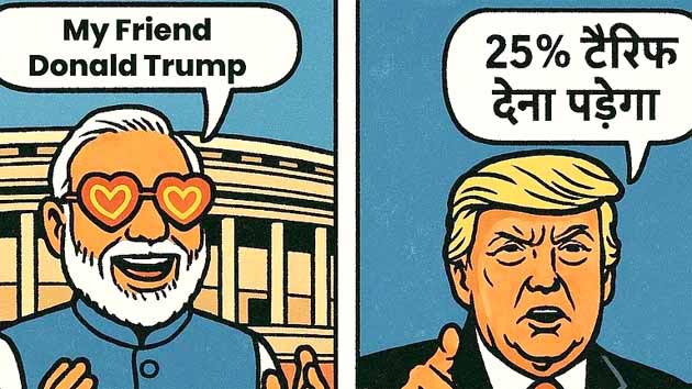 نئی دہلی30جولائی:’’سب کو معلوم ہے کہ کیا ہوا ہے اور وزیراعظم بول نہیں پا رہے ہیں۔ اگر وہ بولیں گے تو ٹرمپ کھل کر سچ بول دیں گے۔ اسی لیے وہ خاموش ہیں۔ ٹرمپ بار بار ایک ہی بات اس لیے دہرا رہے ہیں تاکہ مستقبل میں تجارت کے کسی معاہدے میں نریندر مودی کو دبایا جا سکے۔ آپ دیکھنا، کیسی ٹریڈ ڈیل بنتی ہے۔‘‘ یہ بیان آج صبح کانگریس رکن پارلیمنٹ راہل گاندھی نے پارلیمانی احاطہ میں میڈیا کے سامنے دیا تھا، اور شام ہوتے ہوتے ان کی یہ بات سچ ثابت ہو گئی۔ ٹرمپ نے پی ایم مودی سے دوستی کا خیال نہ رکھتے ہوئے 25 فیصد ٹیرف لگانے کا اعلان کر دیا۔ یہ خبر سامنے آنے کے بعد کانگریس پی ایم مودی پر حملہ آور دکھائی دے رہی ہے۔ کانگریس نے سوشل میڈیا پلیٹ فارم ’ایکس‘ پر کئی پوسٹ کیے ہیں جس میں پی ایم مودی پر طنزیہ حملے کیے گئے ہیں۔ ایک پوسٹ میں پی ایم مودی کی آنکھوں پر لگے چشمہ میں دِل کا نشان بنا ہوا ہے، اور دوسری طرف امریکی صدر ٹرمپ 25 فیصد ٹیرف کا اعلان کر رہے ہیں۔ اس پوسٹ کے ساتھ لکھا گیا ہے ’’دوست نے 25 فیصد کا چونا لگایا۔‘‘