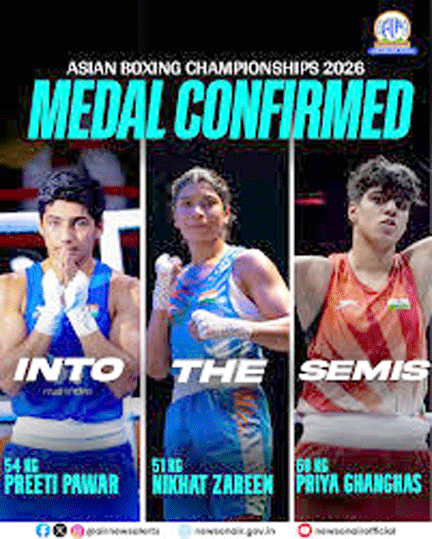 اولان بتار،6 اپریل (یواین آئی ) منگولیا کے شہر اولان بتار میں جاری ایشیائی باکسنگ چیمپئن شپ 2026 میں ہندوستانی خواتین باکسرز نے شاندار کارکردگی دکھائی ہے۔ پریتی پوار، پریا اور اروندھتی چودھری نے اپنے اپنے سیمی فائنل مقابلے جیت کر فائنل میں جگہ بنا لی ہے، جبکہ تجربہ کار باکسرز نکہت زرین اور لولینا بورگوہین کو کانسہ کے تمغے پر اکتفا کرنا پڑا ہے۔54 کلوگرام زمرے میں پریتی پوار نے پیرس اولمپکس کی کانسی تمغہ یافتہ جنوبی کوریا کی ای جی اِم کو واضح برتری کے ساتھ شکست دی۔ انہوں نے تینوں راؤنڈز میں غلبہ برقرار رکھتے ہوئے متفقہ فیصلے سے 5-0 کی کامیابی حاصل کی۔ اب سونے کے تمغے کے لیے ان کا مقابلہ چینی تائپے کی ہوانگ شیاو وین سے ہوگا، جو تین مرتبہ عالمی چیمپئن رہ چکی ہیں اور ٹوکیو 2020 اولمپکس کی کانسی تمغہ یافتہ بھی ہیں۔دیگر مقابلوں میں پریہ (60 کلوگرام) اور اروندھتی چودھری (70 کلوگرام) نے بھی اپنے اپنے سیمی فائنل آسانی سے جیت کر فائنل میں جگہ پکی کی۔ پریہ نے منگولیا کی نامون مونخور کو 5-0 سے شکست دی اور اب فائنل میں ان کا مقابلہ شمالی کوریا کی اُن گیونگ وون سے ہوگا۔ اروندھتی نے ازبکستان کی اویشا توئیرووا کو 4-1 سے ہرا کر سب کو متاثر کیا اور اب وہ قازقستان کی باکیت سیدیش کے خلاف سونے کے تمغے کے لیے مقابلہ کریں گی۔
