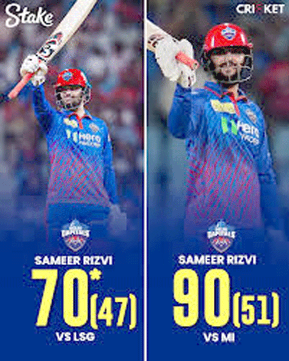 سنچری کی طرف بڑھ رہے سمیر رضوی کو 17ویں اوور میں کاربن بوش نے آؤٹ کر کے ان کی شاندار اننگز کا خاتمہ کیا۔ سمیر رضوی اور ڈیوڈ ملر کے درمیان چوتھی وکٹ کے لیے 78 رنوں کی میچ جتواؤ شراکت داری ہوئی۔ سمیر رضوی نے 51 گیندوں میں سات چوکے اور سات چھکے اڑاتے ہوئے 90 رنوں کی اننگز کھیلی۔ دہلی کیپیٹلز نے 18.1 اوورز میں چار وکٹوں پر 164 رن بنا کر چھ وکٹوں سے مقابلہ اپنے نام کر لیا۔ ڈیوڈ ملر 18 گیندوں میں 21 رن بنا کر ناٹ آوٹ رہے۔ انہوں نے فاتحانہ چوکا لگایا۔سمیر رضوی کے 90 رن آئی پی ایل میں ممبئی کے خلاف دہلی کیپیٹلز کے کسی بھی بّلے باز کا تیسرا سب سے بڑا اسکور ہے۔ ان کے ذریعے لگائے گئے سات چھکے بھی ممبئی کے خلاف دہلی کیپیٹلز کے کسی بّلے باز کی جانب سے لگائے گئے مشترکہ طور پر سب سے زیادہ چھکے ہیں۔ ممبئی انڈینز کے لیے دیپک چاہر، کاربن بوش اور مچل سینٹنر نے ایک ایک بّلے باز کو آؤٹ کیا۔