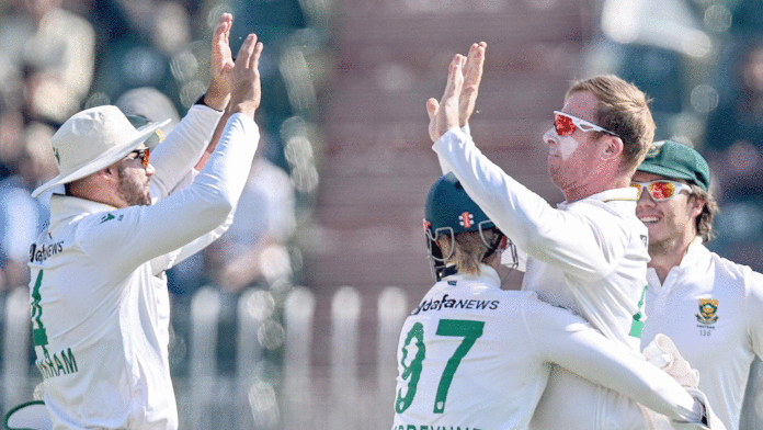 پاکستان کی پوری ٹیم دوسری اننگز میں صرف 138 رنز ہی بناسکی اور جنوبی افریقا کو جیت لیے 68 رنز کا ہدف ملا۔ جنوبی افریقا کی جانب سے سائمن ہارمر نے 6، کیشو مہاراج نے 2 اور کگیسو ربادا نے ایک وکٹ حاصل کی۔ یاد رہے کہ پاکستان نے ٹاس جیت کر پہلے بیٹنگ کرتے ہوئے پہلی اننگز میں 333 رنز بنائے تھے۔ کپتان شان مسعود 87، سعود شکیل 66 اور عبداللہ شفیق 57 رنز بناکر نمایاں رہے تھے۔ سلمان آغا 45، محمد رضوان 19، امام الحق 17، بابر اعظم 16 رنز بناکر آؤٹ ہوئے تھے۔ جنوبی افریقا کی جانب سے کیشو مہاراج نے 7، سائمن ہارمر نے 2 اور کگیسو ربادا نے ایک وکٹ حاصل کی تھی۔ پاکستان کے 333 رنز کے جواب میں جنوبی افریقا نے اپنی پہلی اننگز میں 404 رنز بناکر 71 رنز کی برتری حاصل کی تھی۔ 235 رنز پر 8 وکٹیں گرنے کے بعد متھوسامی نے کیشو مہاراج (30)کے ہمراہ نویں وکٹ پر71 اور ربادا (71)کے ہمراہ دسویں وکٹ پر 98 رنز کی پارٹنرشپ قائم کرکے جنوبی افریقا کو برتری دلوائی۔ متھوسامی 89 رنز پر ناقابل شکست رہے جبکہ ٹرسٹان اسٹبس 76 اور کگیسو ربادا 71 رنز بناکر نمایاں رہے تھے۔ پاکستان کی جانب سے آصف آفریدی نے 6، نعمان علی نے 2 جبکہ شاہین آفریدی اور ساجد خان نے ایک ایک وکٹ حاصل کی تھی۔ آصف آفریدی پاکستان کی جانب سے ڈیبیو پر پانچ وکٹیں حاصل کرنے والے دوسرے لیفٹ آرم اسپنر بن گئے۔