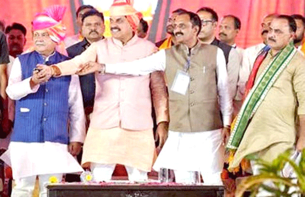 بھوپال 12اکتوبر:وزیر اعلیٰ ڈاکٹر موہن یادو نے کہا ہے کہ ریاستی حکومت خواتین کی بہبود اور ان کے چہروں پر مسکراہٹ لانے کے لیے پرعزم ہے۔ انہوں نے کہا کہ بھائی دوج اور دیوالی کے موقع پر خواتین کے لیے اسکیم کی رقم میں اضافہ کا تحفہ آئے گا۔ اب سے خواتین کو روپے کی رقم ملے گی۔ 1500 ماہانہ۔ وزیر اعلیٰ ڈاکٹر یادو نے مستفیدین میں مختلف اسکیموں کے تحت فوائد بھی تقسیم کیے اور شیوپور ضلع میں سیاحت پر توجہ مرکوز کرتے ہوئے ایک کافی ٹیبل بک کا اجرا کیا۔ وزیر اعلیٰ ڈاکٹر یادو شیوپور میں لاڈلی بہنا یوجنا (لاڈلی بہنا یوجنا) کی 29ویں قسط کے طور پر ?1541 کروڑ (تقریباً 1.54 بلین ڈالر) کی رقم 12.6 ملین لاڈلی بہنا (لاڈلی بہنا) کے کھاتوں میں منتقل کر رہے تھے۔وزیر اعلیٰ ڈاکٹر یادو نے کہا کہ شیوپور خطہ کے کسانوں کو بین ریاستی پاروتی-کالی-سندھ چمبل ریور لنکنگ پروجیکٹ سے فائدہ ہوگا۔ مستقبل قریب میں یہ خطہ زرعی پیداوار میں پنجاب اور ہریانہ جیسی ریاستوں کو پیچھے چھوڑ دے گا۔ مدھیہ پردیش حکومت کسانوں کی فلاح و بہبود کے لیے پابند عہد ہے۔ گیہوں پر 2600 روپے فی کوئنٹل کا بونس متعارف کرایا گیا ہے، جبکہ کسانوں کی معاشی بہبود کو بڑھانے کے لیے بھونتر جیسی اسکیمیں لاگو کی گئی ہیں۔ شیوپور ضلع کے میلہ گراؤنڈ میں منعقدہ ایک عظیم الشان تقریب میں وزیر اعلیٰ ڈاکٹر یادو نے ?532 کروڑ (تقریباً 5.32 بلین ڈالر) کے ترقیاتی منصوبوں کا افتتاح اور سنگ بنیاد رکھا۔