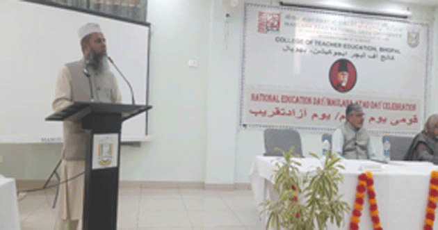بھوپال(11 نومبر، 2025) مانو- کالج آف ٹیچر ایجوکیشن، بھوپال میں مولانا ابولکلام آزاد کی یوم پیدائش کے حوالے سے پروگرام کا انعقاد کیا گیا- گزشتہ سالوں کی طرح اس سال بھی طلبا نے متعدد ثقافتی، ادبی اور کھیل سے متعلق سرگرمیوں میں گرم جوشی کے ساتھ شرکت کی- پروگرام کی صدارت کے فرائض مانو- کالج آف ٹیچر ایجوکیشن ، بھوپال کے انچارج پرنسپل پروفیسر عبدالرحیم نے کی- اپنے صدارتی خطبہ میںپروفیسر عبدالرحیم نے مولانا آزاد کی تعلیمی، ادبی اور سیاسی زندگی پر روشنی ڈالی- انہوں نے کہا کہ مولانا آزاد تحریک آزادی میں کلیدی کردار اد اکیا، وہ پوری زندگی قومی یکجہتی کے علمبردار رہے- انہوں نے اپنی تحریر سے ملک میں انقلاب پیدا کیا- مزید، انہوں نے طلبا کے لئے تعلیمی سرگرمیوں کے ساتھ ساتھ ثقافتی اور کھیل سے منسلک سرگرمیوں کی اہمیت پر مفصل روشنی ڈالی اورطلبا کو وقت اور خود کی اہمیت کو پہچان نے اور سمجھنے کی ترغیب دی- اس کے علاوہ ابوذرغفاری (بی-ایڈ سال دوم)،رستم علی (بی- اےسال دوم)اوروسیم اختر (بی- ایڈ سال اول) نے مولانا آزاد کی شخصیت کےمختلف جہات پرروشنی ڈالی-