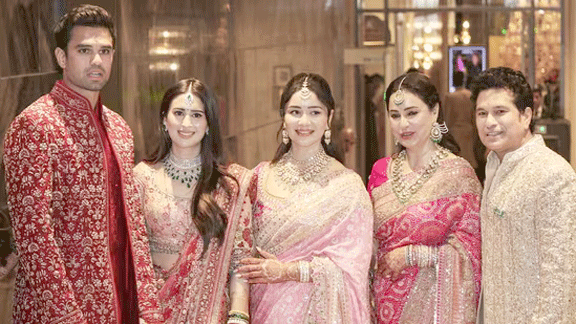 ممبئی،5 مارچ (یواین آئی )کرکٹ کے لیجنڈ سچن تیندولکر کے بیٹے ارجن تیندولکر کی شادی کی تقریب جمعرات کو ممبئی میں منعقد ہوئی، جو نامور شخصیات کی موجودگی کے باعث ایک یادگار ایونٹ بن گئی۔ ارجن نے ‘گریوس گروپ کے چیئرمین روی گھئی کی پوتی سانیا چنڈوک سے شادی کی ہے۔