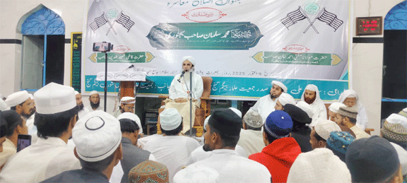 رائسین، 10 اکتوبر: جمعیۃ علماء کا چوتھا جلسہ ضلع رائسین کے بیگم گنج واقع جامع مسجد میں دیوبند، اتر پردیش سے تشریف لائے مولانا محمد سلمان بجنوری کی صدارت میں ہوا۔ مہمانان خصوصی کی حیثیت سے جمعیۃ علماء ہند کے ریاستی صدر مولانا احمد خان اور ضلع صدر قاضی سید ظہیر الدین نے شرکت کی۔ آنے والے تمام علمائے کرام کا کرشی اپج منڈی کے قریب استقبال کیا گیا۔ نوجوانوں نے انہیں بائیک ریلی کے ساتھ جامع مسجد تک پہنچایا اور پھولوں کی پتیاں نچھاور کیں۔اجلاس کا آغاز مولانا زید زلفی کی تلاوت کلام پاک سے ہوا۔ قاری شعیب خان نے نعت شریف پیش کی۔ مولانا نذر محمد قاسمی نے اپنی افتتاحی تقریر میں احترام، عقیدت اور محبت کے بارے میں تفصیل سے بات کی اور اپنی زندگی میں تعلیمات مصطفی، اطاعت رسول اور احکام الٰہی پر عمل کرنے کے لیے علمائے حق سے جڑنے کی اپیل کی۔شوریٰ کمیٹی کے رکن حاجی چاند میاں ایڈووکیٹ نے علامہ اقبال کے اشعار پیش کئے۔ مولانا صمد خان ندوی نے اجلاس کی نظامت کرتے ہوئے جمعیت کی دو سالہ خدمات کو پیش کیا۔