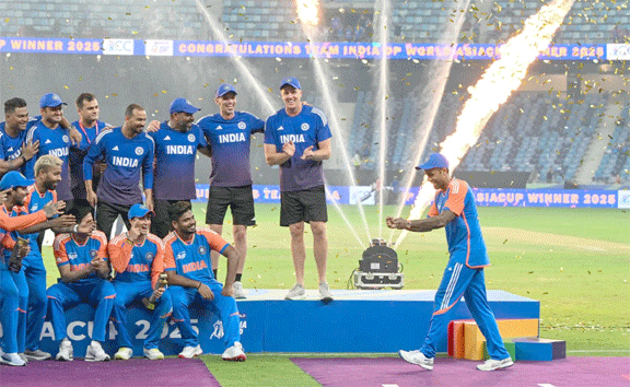 دبئی، 29 ستمبر (یو این آئی ) ہندوستانی کرکٹ ٹیم نے اتوار کو دبئی میں پاکستان کے خلاف فائنل میچ میں فتح کے بعد ایشین کرکٹ کونسل (اے سی سی) کے صدر اور پاکستان کرکٹ بورڈ (پی سی بی) کے چیئرمین محسن نقوی سے ایشیا کپ ٹرافی لینے سے انکار کردیا۔ اس واقعہ سے رنکو سنگھ کے جیتنے والی باؤنڈری کے بعد انعامات کی تقسیم کی تقریب کے آغاز میں ڈیڑھ گھنٹے سے زیادہ تاخیر ہوئی۔ کرک بز کی رپورٹ کے مطابق، ہندوستانی ٹیم نے نقوی سے ٹرافی لینے سے انکار کردیا، جب کہ نقوی نے جیتنے والی ٹیم کو ٹرافی دینے کے لیے اپنی جگہ سے ہٹنے سے انکار کردیا۔ نقوی جو پاکستان کے وزیر داخلہ بھی ہیں، نے اصرار کیا کہ وہ اکیلے ہی ٹرافی پیش کریں گے۔ ایوارڈز کی تقریب شروع ہونے سے قبل ہی ٹرافی کو میدان سے ہٹا دیا گیا۔ تلک ورما، کلدیپ یادیو، اور ابھیشیک شرما نے اسپانسرز سے اپنے ایوارڈ حاصل کیے، لیکن ہندوستانی ٹیم کو ان کے تمغے اور ٹرافی دینے سے انکار کر دیا گیا۔ ہندوستان کو ٹرافی کے بغیر اپنے ڈریسنگ روم میں واپس جانا پڑا۔ پاکستان نے اپنا رنر اپ میڈل بی سی بی کے صدر امین الاسلام سے وصول کیا اور پھر اپنے ہیڈ کوچ مائیک ہیسن کے ساتھ سیدھے اپنے ڈریسنگ روم میں گئے۔ میچ کے بعد پاکستانی ٹیم اور اس کے ارکان ڈریسنگ روم سے باہر چلے گئے جس سے پریس کانفرنس کے ارد گرد غیر یقینی صورتحال پیدا ہو گئی۔ پاکستانی ٹیم بالآخر ایک گھنٹہ اندر گزارنے کے بعد ڈریسنگ روم سے باہر نکلی، غالباً کشیدہ تعطل کے ختم ہونے کا انتظار کر رہی تھی، زیادہ تر ہندوستانی ہجوم کی طرف سے اونچی آواز میں، اپنی ٹیم کو ٹرافی اٹھاتے دیکھنے کے لیے بے چین تھی۔ اس کے باوجود انعام دینے کی تقریب میں مزید تاخیر ہوئی اور دونوں ٹیموں کے کھلاڑی میدان میں بیٹھے رہے۔