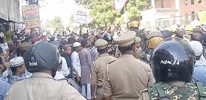 رپوٹ کے مطابق، کچھ مقامات پر پتھراؤ بھی کیا گیا، جس کے جواب میں پولیس نے مظاہرین پر لاٹھی چلائی اور آنسو گیس کے گولے استعمال کیے۔ سوشل میڈیا اور ٹی وی چینلز پر دکھائی گئی تصاویر میں پولیس اہلکار مظاہرین کے پیچھے بھگاتے ہوئے لاٹھیاں چلاتے نظر آ رہے ہیں۔ واقعے کے بعد سینئر افسران موقع پر پہنچ گئے اور صورتحال کا جائزہ لیا۔ ضلع مجسٹریٹ اویناش سنگھ نے کہا کہ ’’صورتِ حال اب معمول پر ہے اور کسی بھی ناخوشگوار واقعے کی اطلاع نہیں ملی۔ ہم شہریوں سے اپیل کرتے ہیں کہ وہ امن اور ہم آہنگی قائم رکھیں۔‘‘ ‘‘ پولیس نے بتایا کہ مسجد کے باہر سڑکوں پر مظاہرہ کرنے والے نمازیوں نے ’آئی لو محمدؐ‘ اور ’نعرہ تکبیر اللہ اکبر‘ جیسے نعرے لگائے، ہجوم لگنے پر پولیس کو لاٹھی چارج اور آنسو گیس کا سہارا لینا پڑا۔