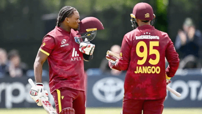ڈبلن، 26 مئی (یو این آئی) کیسی کارٹی کی سنچری (170)، کپتان شائی ہوپ (75) اور جسٹن گریوز (50) کی نصف سنچریوں کے بعد جیڈن سیلز (تین وکٹ) کی شاندار گیند بازی کی بدولت ویسٹ انڈیز نے بارش سے روکے ہوئے ون ڈے سیریز کے تیسرے ون ڈے میچ میں آئرلینڈ کو 97 رنز سے شکست دے دی۔ کیسی کارٹی کو ان کی شاندار کارکردگی پر ‘پلیئر آف دی میچ اور ‘پلیئر آف دی سیریز سے نوازا گیا۔ اتوار کی شب کھیلے گئے میچ میں آئرلینڈ نے ٹاس جیت کر پہلے گیند بازی کا فیصلہ کیا۔ بیٹنگ کے لیے آتے ہوئے ویسٹ انڈیز کا آغاز اچھا نہیں تھا کیونکہ اس نے 31 کے اسکور پر اپنے دونوں اوپنرز کو کھو دیا۔ برینڈن کنگ (1) اور ایون لیوس (14) پر آؤٹ ہوئے۔ اس کے بعد کیسی کارٹی اور کپتان شائی ہوپ نے نہ صرف اننگز کو سنبھالا بلکہ تیزی سے رنز بھی بنائے۔ کیسی کارٹی اور شائی ہوپ نے تیسری وکٹ کے لیے 147 گیندوں پر 137 رنز جوڑے۔ کیسی کارٹی نے 142 گیندوں پر 170 رنز بنائے۔ اس سیریز میں کارٹی کی یہ مسلسل دوسری سنچری ہے۔ کپتان شائی ہوپ نے 75 گیندوں میں 75 رنز (75) اور جسٹن گریویز نے 23 گیندوں میں 50 رنز بنائے۔ جنگو نے 36 گیندوں کا سامنا کیا اور 22 رنز بنائے۔ کارٹی نے پھر جسٹن گریوز کے ساتھ پانچویں وکٹ کے لیے 40 گیندوں پر 97 رنز کی شراکت کی۔ اس شراکت داری کی بدولت ویسٹ انڈیز نے آخری آٹھ اوورز میں 132 رنز جوڑے۔ ویسٹ انڈیز نے مقررہ 50 اوورز میں سات وکٹوں پر 385 رنز بنائے۔ آئرلینڈ کی جانب سے بیری میکارتھی نے تین وکٹیں حاصل کیں۔ لیام میکارتھی نے دو وکٹیں حاصل کیں۔ اینڈی میک برائن اور جارج ڈوکریل نے ایک ایک بلے باز کو آؤٹ کیا۔