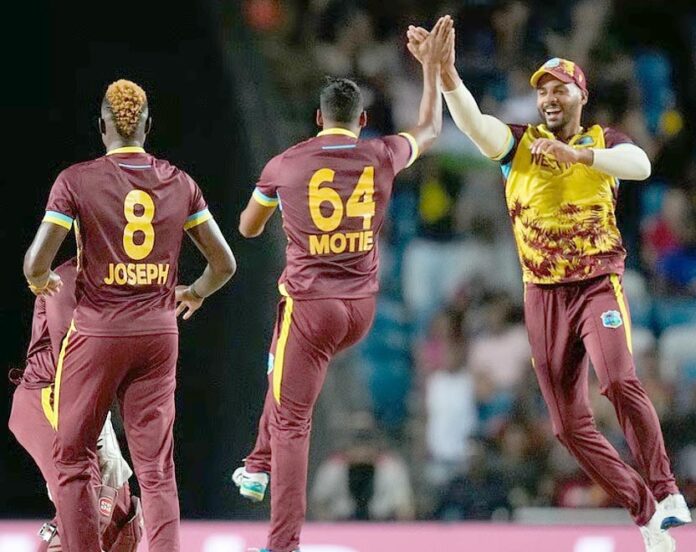 نیوزی لینڈ کی جانب سے جیکب ڈفی اور جیک فولکس نے دو دو وکٹیں حاصل کیں۔ جیمز نیشم اور کائل جیمیسن نے ایک ایک بلے باز کو آؤٹ کیا۔ 165 کے ہدف کے تعاقب میں نیوزی لینڈ کی شروعات بھی خراب رہی، ڈیون کونوے (13) کو 30 رنزکے اسکور پرپویلین لوٹ گئے۔ وہ چوتھے اوور میں میتھیو فورڈ کے ہاتھوں بولڈ ہوئے۔ نیوزی لینڈ کی دوسری وکٹ ٹم رابنسن (27) کی صورت میں گری۔ اس کے بعد ویسٹ انڈیز کے گیند بازوں نے نیوزی لینڈ کے کسی بھی بلے باز کو پچ پر ٹھہرنے نہیں دیا۔ راچن رویندرا (21)، ڈیرل مچل (13) اور مائیکل بریسویل صرف ایک رن بنا کر آؤٹ ہوئے۔ روسٹن چیس نے پھر 16ویں اوور میں جمی نیشم (11) اور زیکری فاکس (1) کو آؤٹ کیا اور جیڈن سیلز نے اگلے ہی اوور میں کائل جیمیسن (2) کو آؤٹ کرکے ویسٹ انڈیز کی فتح کی بنیاد رکھی۔