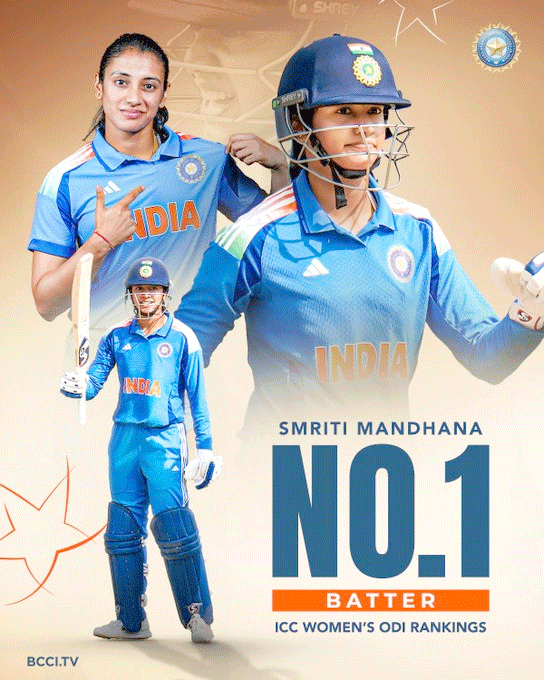 دبئی، 16 ستمبر (یو این آئی) ہندوستانی سلامی بلے باز اسمرتی مندھانا نے اتوار کو نیو چنڈی گڑھ میں کھیلے گئے تین میچوں کے ون ڈے سیریز کے پہلے میچ میں آسٹریلیا کے خلاف شاندار نصف سنچری بنائی تھی، جس کے ساتھ ہی انہوں نے آئی سی سی خواتین ون ڈے بلے بازی درجہ بندی میں دوبارہ پہلا مقام حاصل کر لیا ہے۔بائیں ہاتھ کی بلے باز نے 63 گیندوں پر چھ چوکے اور دو چھکے لگا کر 58 رنز کی اننگز کھیلی اور انگلینڈ کی کپتان نیٹ شیور-برنٹ کو پیچھے چھوڑتے ہوئے وہ مقام دوبارہ حاصل کر لیا ہے، جو انہوں نے پہلی بار جنوری 2019 میں حاصل کیا تھا اور حال ہی میں اس سال جولائی میں بھی حاصل کیا تھا۔آسٹریلیا نے آٹھ وکٹ سے جیت حاصل کی اور یہ جیت ان کی کھلاڑیوں کی رینکنگ میں بھی نظر آئی۔ بائیں ہاتھ کی بلے باز بیتھ مونی نے 74 گیندوں پر ناٹ آؤٹ 77 رنز کی اننگز کھیل کر تین درجے بہتری کے ساتھ پانچویں نمبر پر پہنچ گئی ہیں۔
